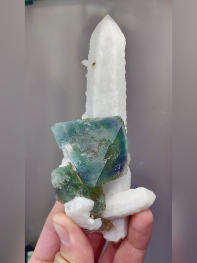 01-3-0116 Green Octahedral Fluorite and Crystal from Huanggangliang, Inner Mongolia 13.5*5.5*4 CM