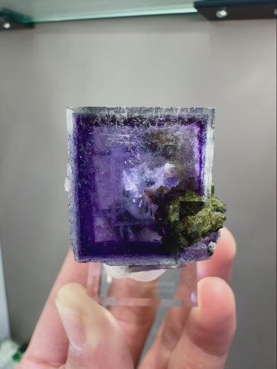 01-3-0054 Purple Cube Phantom Fluorite Hunan Yaogangxian 30*30*44 MM