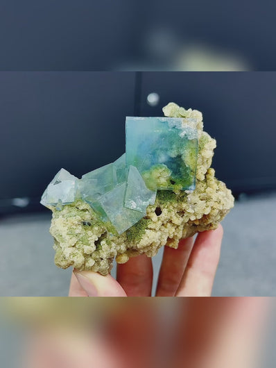Natural Blue Cubic Fluorite and Mica Symbiosis comes fom Yaogangxian,Hunan 85*60*35MM
