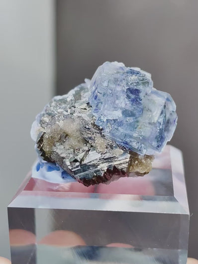 Born in the hallowed depths of Yaogangxian Mine—the crown jewel of Chinese mineral locales—this hypnotic specimen captures liquid sky in crystalline form. Behold geometrically perfect Blue Cubic Fluorite (CaF₂), its icy facets holding glacial light like frozen Antarctic oceans. A museum-caliber micro-treasure, sculpted by hydrothermal forces where science meets sorcery.