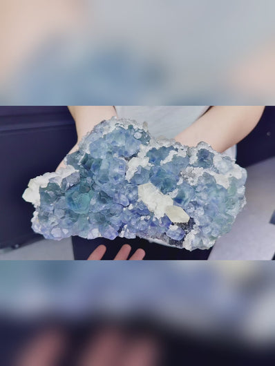 Natural Blue Fluorite and Calcite Symbiosis comes from Fujian,China 230*40*60MM