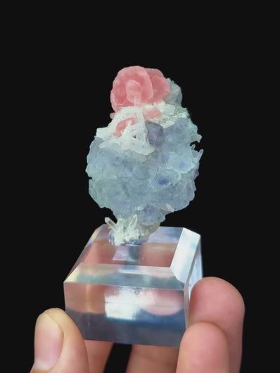 RARE Arctic Blue Fluorite ✦ Velvet Rhodochrosite Union • Wuzhou, Guangxi • 25×20×40mm • One-of-a-Kind