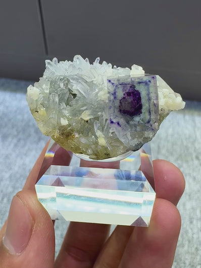 Natural Blue-Purple Phantom Fluorite & Quartz Coexistence Specimen from Yaogangxian, Hunan | Cosmic Miniature | 35x25x15mm | 0.04kg | One-of-a-Kind
