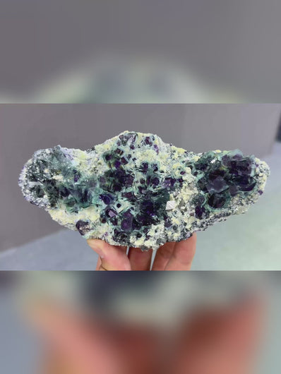 Natural Blue Purple Phantom Fluorite and Mica coexist comes from Yindu,Inner Mongolia 160*35*75MM
