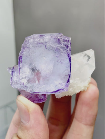 ✨ Quartz Prism: Glassy terminations refract light into rainbows, amplifying the fluorite’s hypnotic depth.