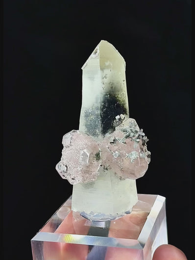 Natural Pink Octahedral Fluorite Coexist with Crystals comes from Neimenggu 25*20*60MM