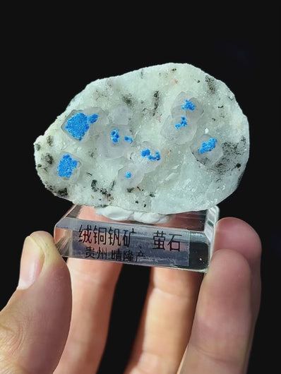 Natural Cyanotrichite Coexisting With Fluorite comes from Qinglong,Guizhou 55*20*35MM
