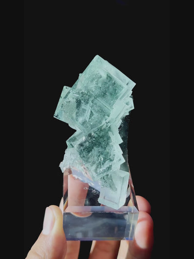 Natural Green Cubic Fluorite comes from Xianghualing,Hunan 40*30*65MM