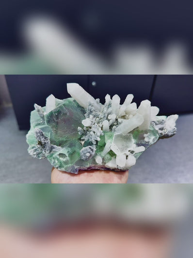 Natural Green Octahedral Fluorite and Quartz Clusters Coevolved comes from Inner Mongolia,China 190*90*90MM