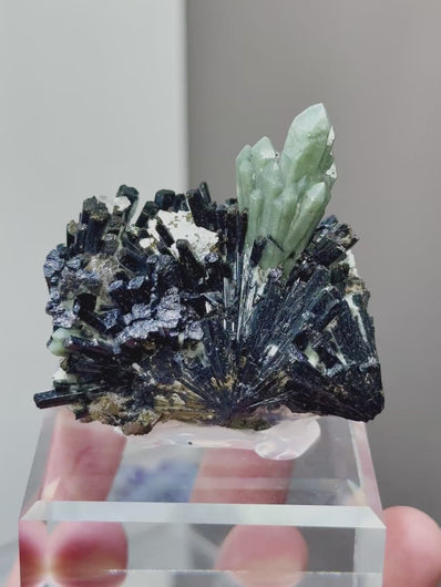Natural Green Quartz Tower coexist with Wolframite comes from Inner Mongolia,China 45*30*45MM