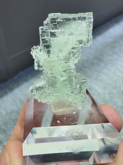Natural High-transparency Green Fluorite and Crystal Coexist comes from Xianghaling,Hunan 20*10*30MM