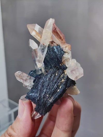 Natural Specularite and Crystal Clusters coexist comes from Jinlong, Guangdong 55*40*46MM