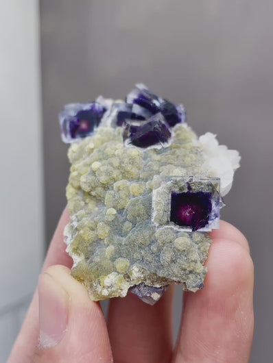 Natural Phantom Fluorite and Flake Calcite coexist with Mica comes from Yindu,Inner Mongolia 40*20*60MM