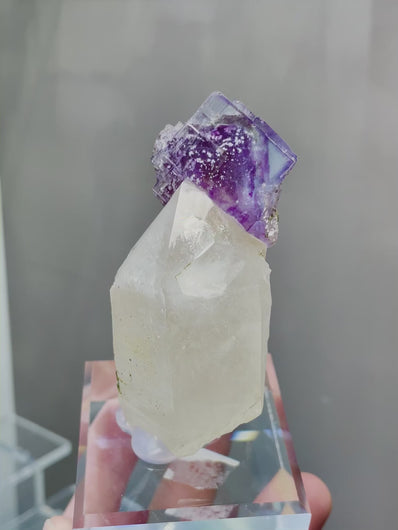 Natural Purple Cubic Fluorite and Quartz coexist comes from Yaogangxian,Hunan 30*35*60MM