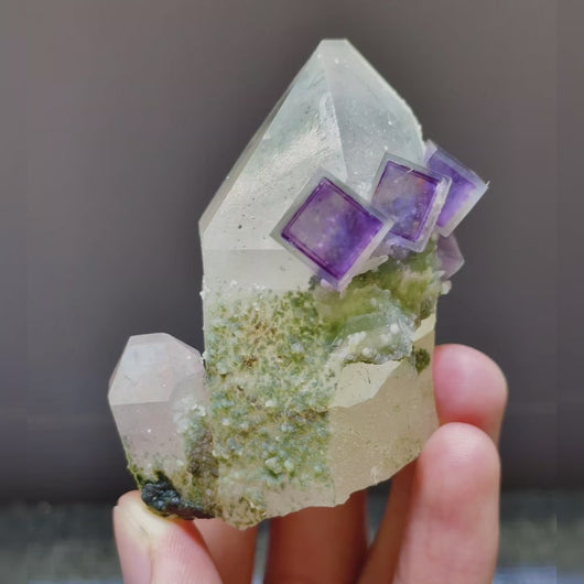 Natural Purple Cubic Fluorite and Quartz Tower Symbiosis comes from Yaogangxian,Hunan 45*35*65MM