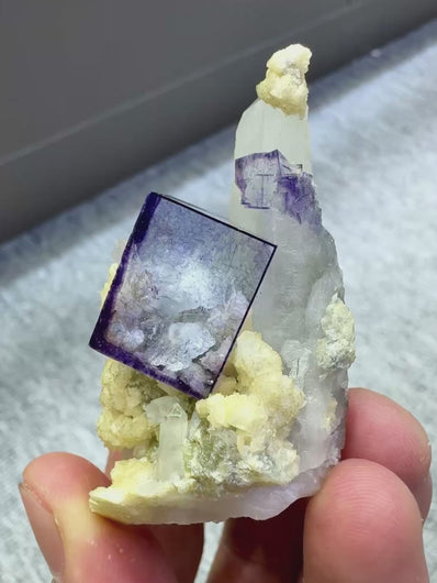 Natural Purple Cubic Fluorite coexists with Quartz and Flaky Calcite comes from Yaogangxian,Hunan 30*30*50MM