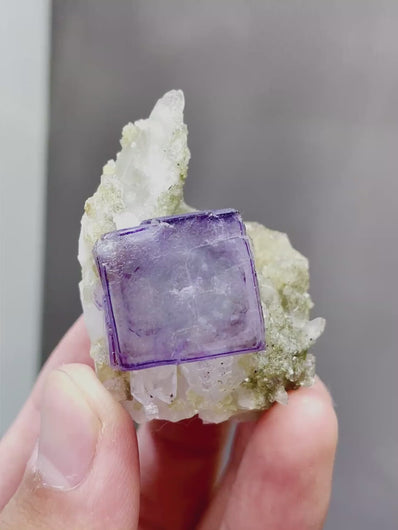 MICRO-COSMIC DUET: Unique Purple Cubic Fluorite & Quartz – Yaogangxian, Hunan (30×35×37mm, 0.05kg)