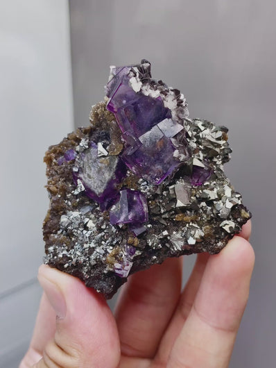 Natural Purple Cubic Fluorite coexists with Toxic Sand comes from Yaogangxian,Hunan 50*25*55MM