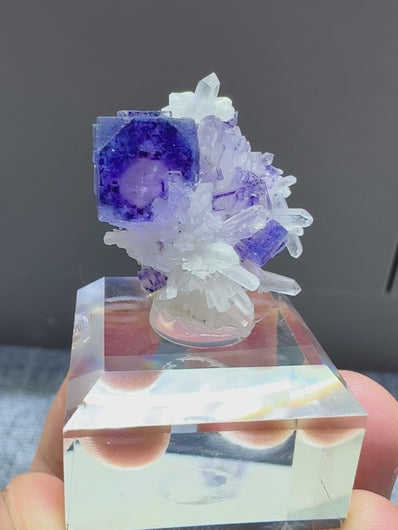 Natural Purple Fluorite & Crystal Cluster Coexistence Specimen from Yaogangxian, Hunan | Cosmic Micro-Gem | 20x20x20mm | 0.03kg | One-of-a-Kind