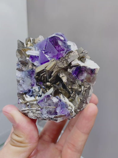 Natural Purple Fluorite coexists with Magnetite comes from Yindu,Inner Mongolia 75*50*60MM