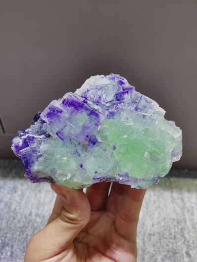 Natural Purple Phantom Fluorite and Green Fluorite coexist comes from Zhejiang,China 115*55*80MM