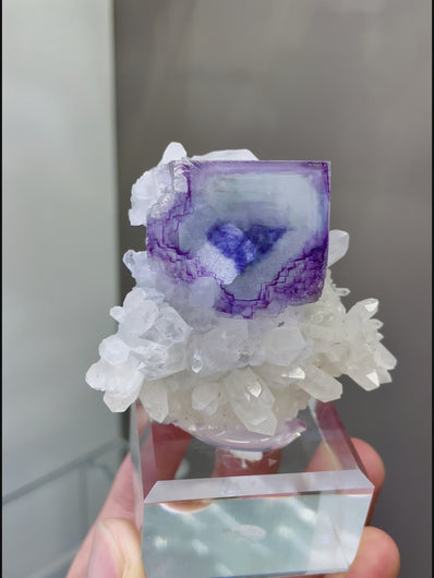 Natural Purple Phantom Fluorite and Quartz coexist comes from Yaogangxian,Hunan 55*25*50MM