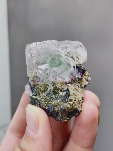 Natural Transparent Fluorite and Mica coexist comes from Yaogangxian,Hunan 35*25*45MM
